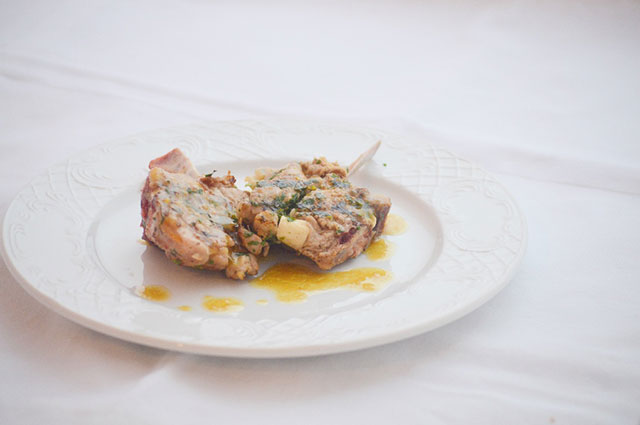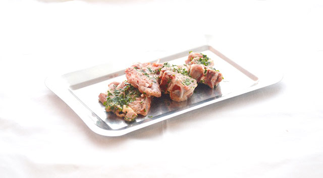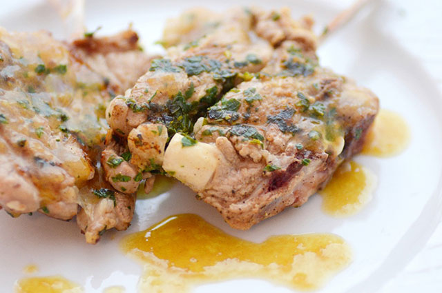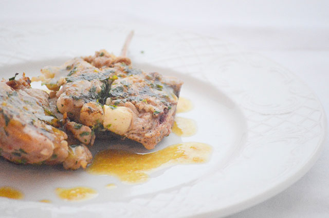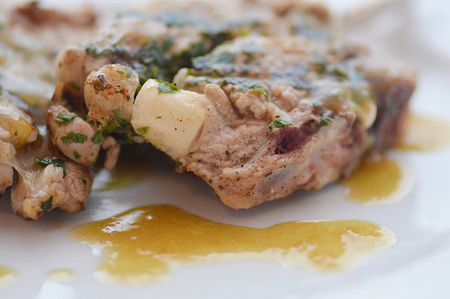 Battere leggermente le costolette, condirle con succo di limone, prezzemolo tritato, pepe nero qualche goccia di Gin e olio extra vergine.