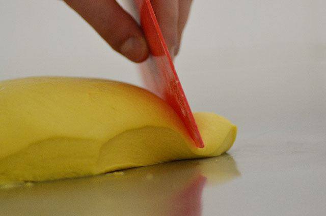 Impastare direttamente tutti gli ingredienti in planetaria fino ad ottenere un composto liscio ed omogeneo,avendo l’ accortezza di unire sale e materia grassa alla fine;