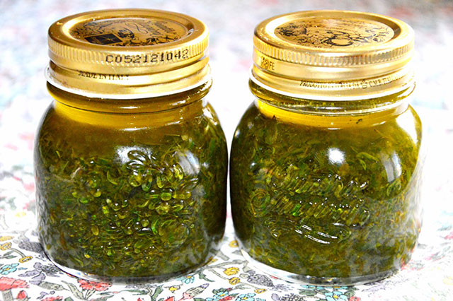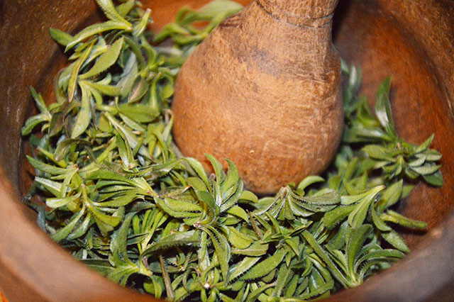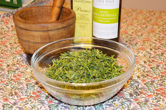 Se invece volete utilizzare la vecchia tecnica, potete sfogliare la Santoreggia e sminuzzare le foglioline al coltello; riporle nel mortaio e lavorarle delicatamente, aggiungendo tutti gli altri ingredienti.