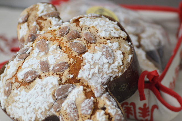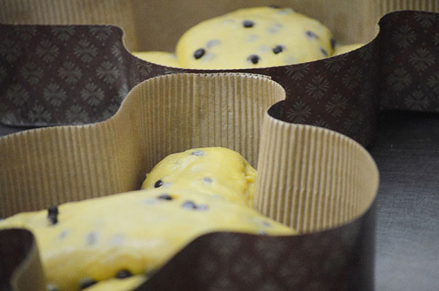 prima di essere infornate, che rilasciano l’inconfondibile aroma di arancio, limone e uvetta.